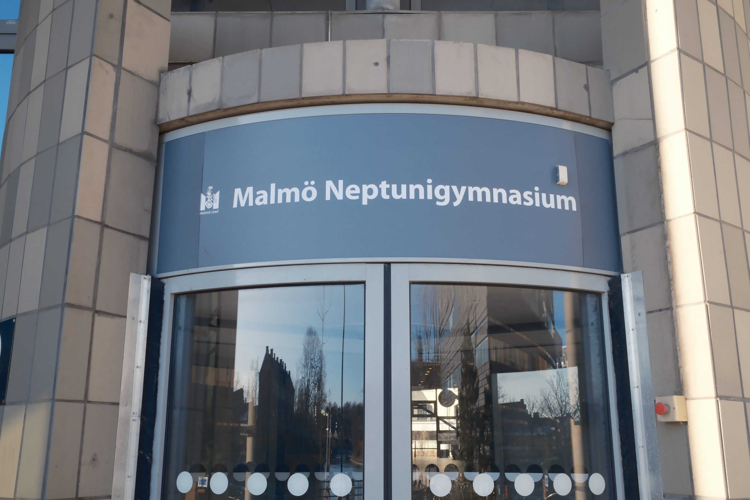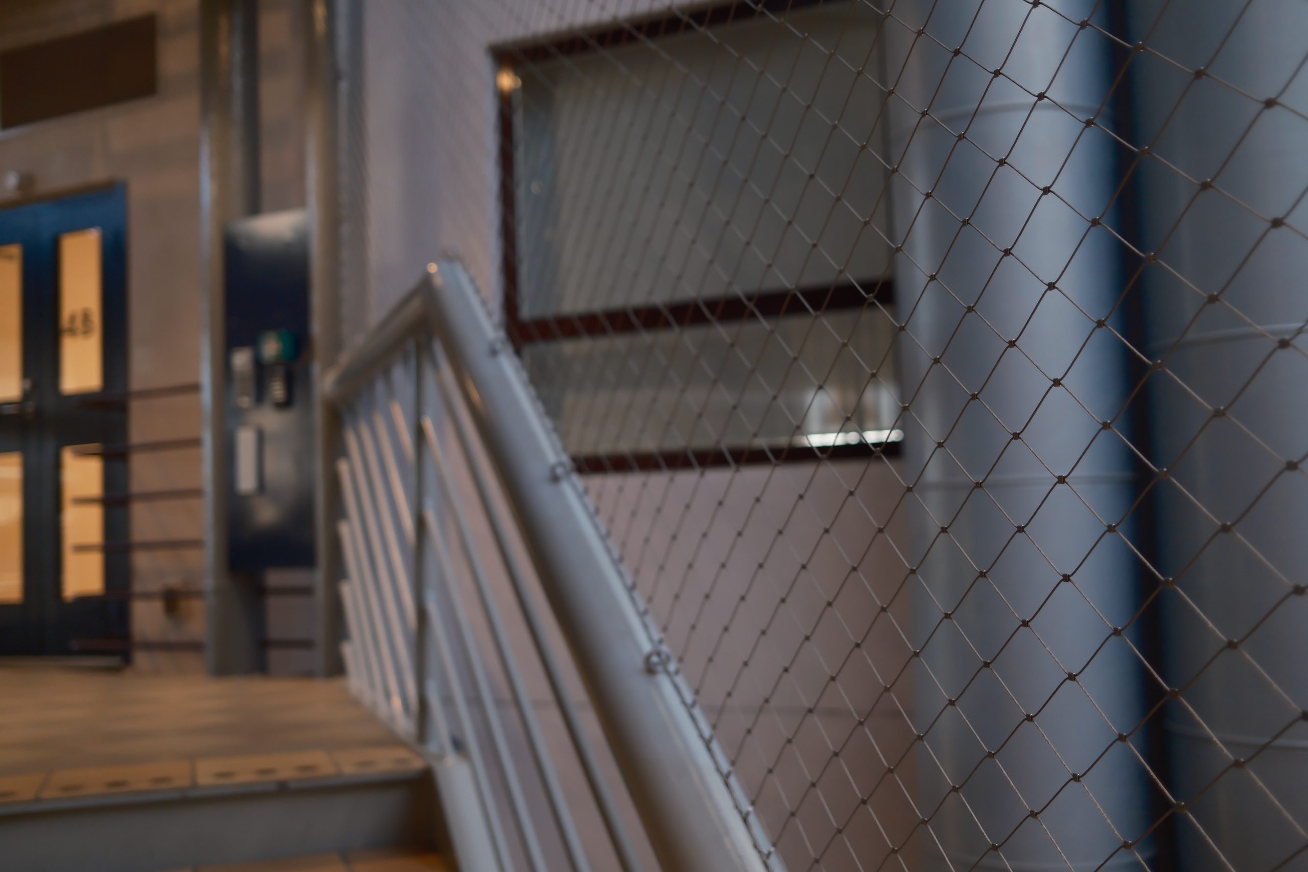 På Neptunigymnasium i Malmö ble det installert et nettingnett. Webnet Mikro for å skape et tryggere miljø rundt bygningens åpne trappeoppgang.